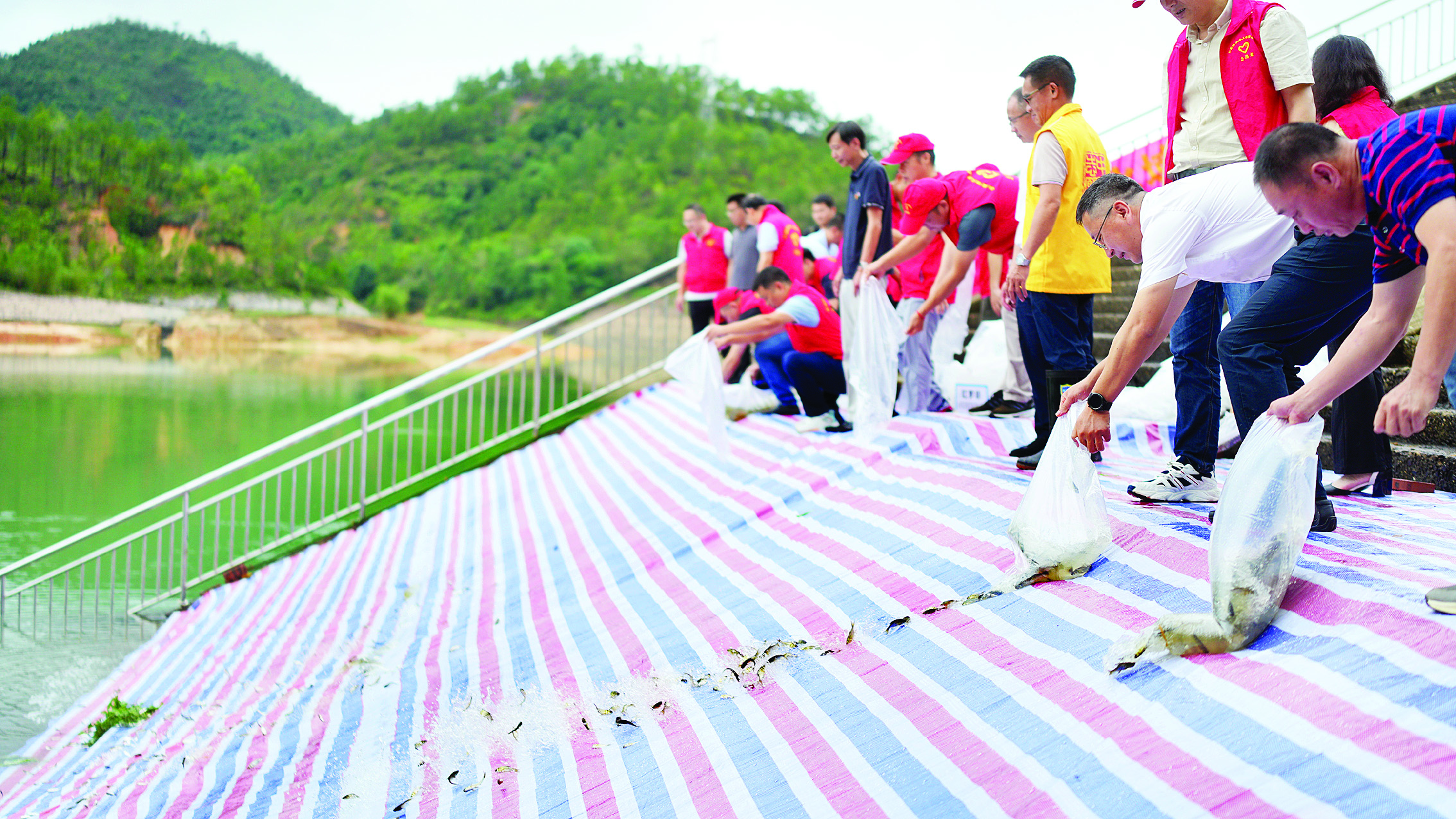 活動(dòng)共投放了鰱、鳙等成魚和魚苗約100萬尾;葜萑?qǐng)?bào)記者陳春惠 通訊員李慶勇 攝