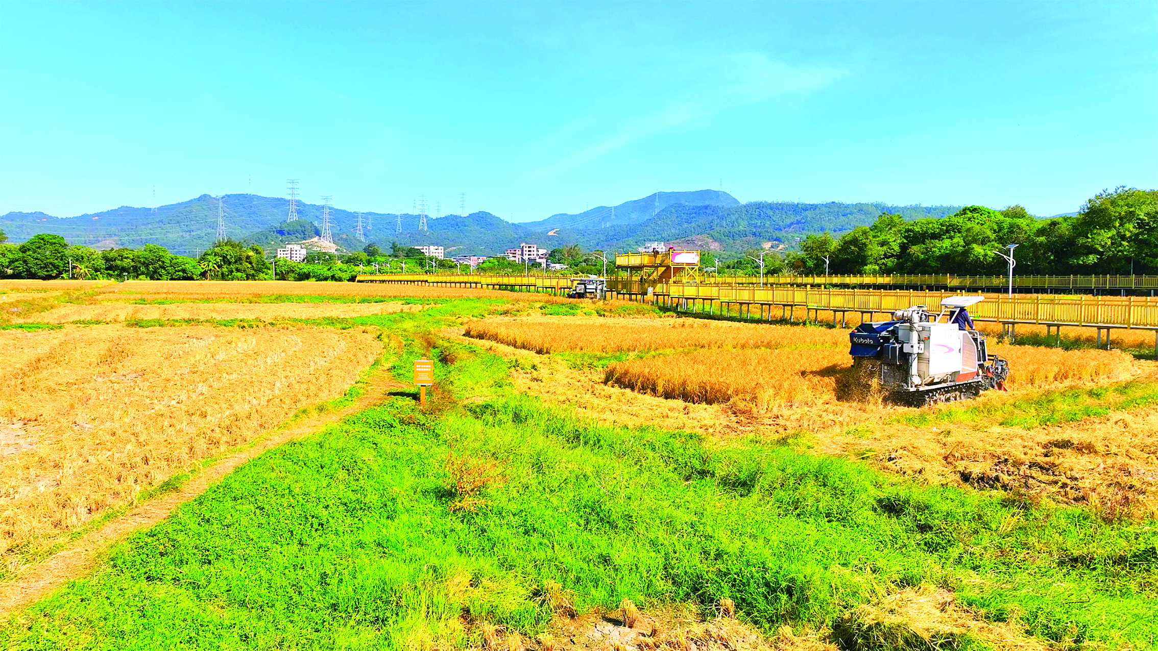 作為集水稻種植和觀光旅游于一體的綜合性田園,“美麗田園”中央設(shè)置了明黃色的棧道,游客徜徉其中如同置身于金色海洋。周邊還串聯(lián)著清泉古寺、大亞灣森林公園,為游客們提供豐富的旅游體驗(yàn)。惠州日?qǐng)?bào)記者張宇琪 攝