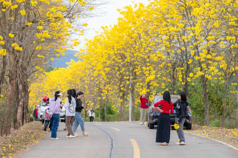這是一場(chǎng)共赴美好的等待。楊僑鎮(zhèn)一直重視綠美生態(tài)建設(shè),打造綠美網(wǎng)紅點(diǎn)。每年2月底,到楊僑鎮(zhèn)朝田辦事處賞花打卡的游人絡(luò)繹不絕。朝田辦事處村道兩旁,連綿成片的黃花風(fēng)鈴木滿(mǎn)樹(shù)金黃,宛如鄉(xiāng)間的“黃金長(zhǎng)廊”。據(jù)了解,自2015年以來(lái),朝田辦事處在沿村6公里主干道兩旁陸續(xù)種植黃花風(fēng)鈴木6000余株。每年黃花風(fēng)鈴木盛開(kāi)的時(shí)候,這里便會(huì)成為網(wǎng)紅打卡點(diǎn),成為當(dāng)?shù)剜l(xiāng)村旅游的一張亮麗名片。同時(shí),沿路還有宮粉紫荊盛開(kāi),與金黃花海相互映襯,為鄉(xiāng)村增添一抹柔美亮色。