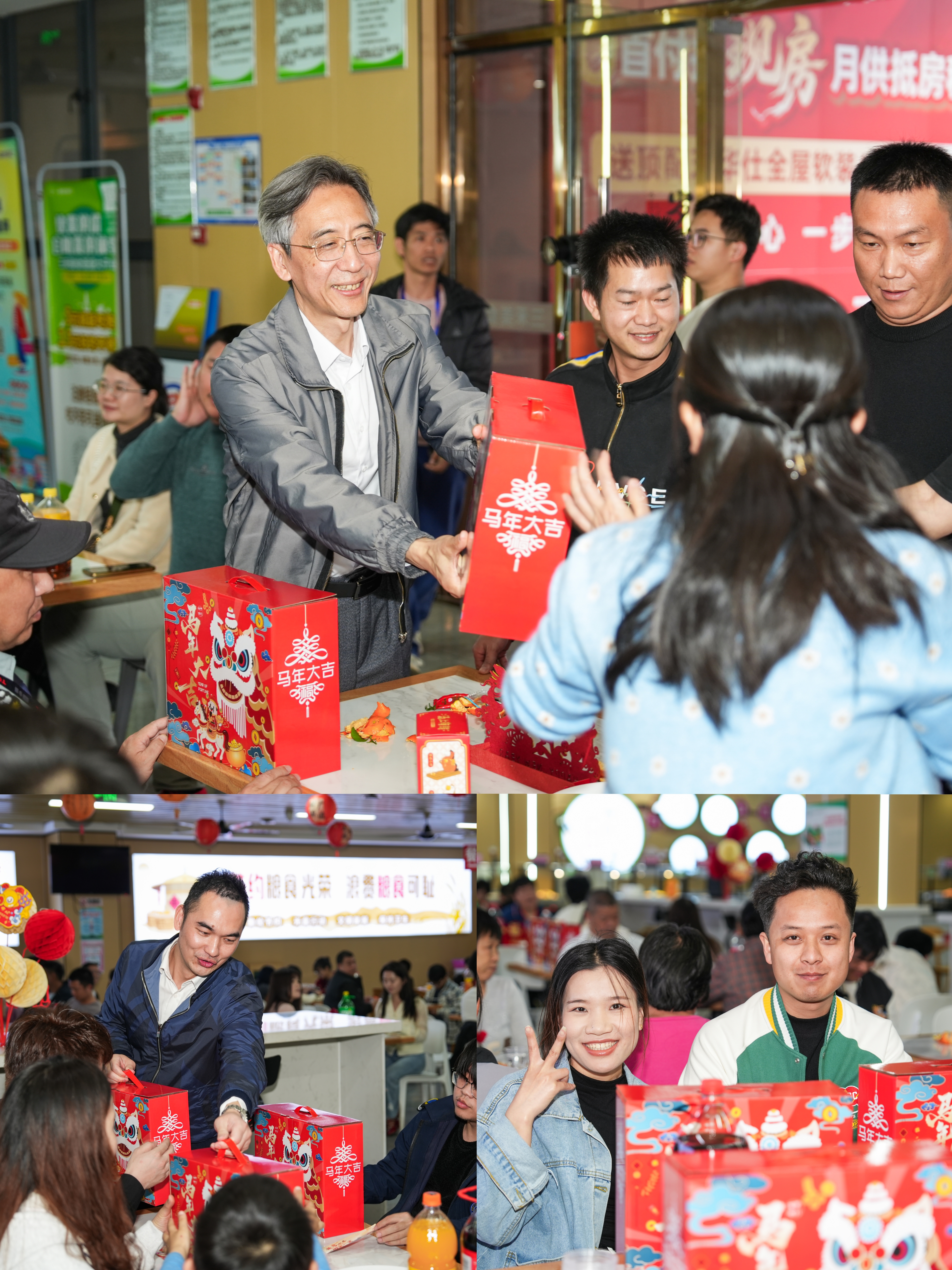 致辭結(jié)束后,參與活動(dòng)的領(lǐng)導(dǎo)與現(xiàn)場(chǎng)工作人員逐桌為職工送上承載著深切關(guān)懷的堅(jiān)果禮包,與大家親切交談,獻(xiàn)上新春祝福。沉甸甸的春節(jié)禮品和貼心的話語(yǔ),讓留園職工深深感受到智慧區(qū)的溫情與關(guān)愛。