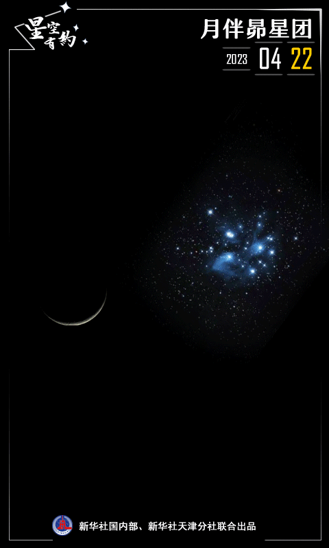 4月22日傍晚,一彎細(xì)細(xì)的蛾眉月會近距離伴隨著名的疏散星團(tuán)——昴星團(tuán)(也稱“七姐妹星團(tuán)”)出現(xiàn)在西北方天空。“這幕天象非常適合目視觀測和攝影拍照。感興趣的公眾最好是去光污染較小的郊外或鄉(xiāng)村,這樣裸眼就能夠直接看到昴星團(tuán),它就在蛾眉月的旁邊不遠(yuǎn)處,像一團(tuán)晶瑩的藍(lán)色‘鉆石’!碧旖蚴刑煳膶W(xué)會理事、天津科學(xué)技術(shù)館天文科普專家宋媛媛說。