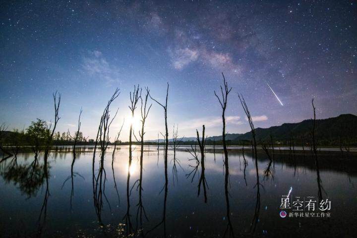 這是重慶市天文攝影愛好者戴建峰2022年4月23日在云南念湖拍攝的天琴座流星雨。(本人供圖)