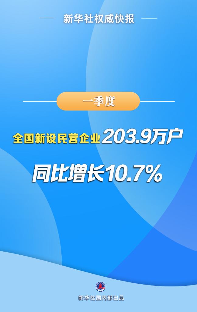 記者4月27日從市場監(jiān)管總局獲悉,一季度,全國新設(shè)民營企業(yè)203.9萬戶,同比增長10.7%,我國民營企業(yè)展現(xiàn)出強(qiáng)大的內(nèi)生動(dòng)力。