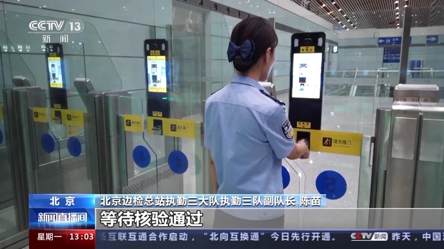 北京邊檢總站執(zhí)勤三大隊(duì)執(zhí)勤三隊(duì)副隊(duì)長(zhǎng) 陳苗:首先,讓我們來(lái)放入證件,以中國(guó)電子因私普通護(hù)照為例,我們需要將國(guó)徽的一面向上,平放到閱讀設(shè)備的玻璃上,這里大家不要忘記拿走自己的證件。