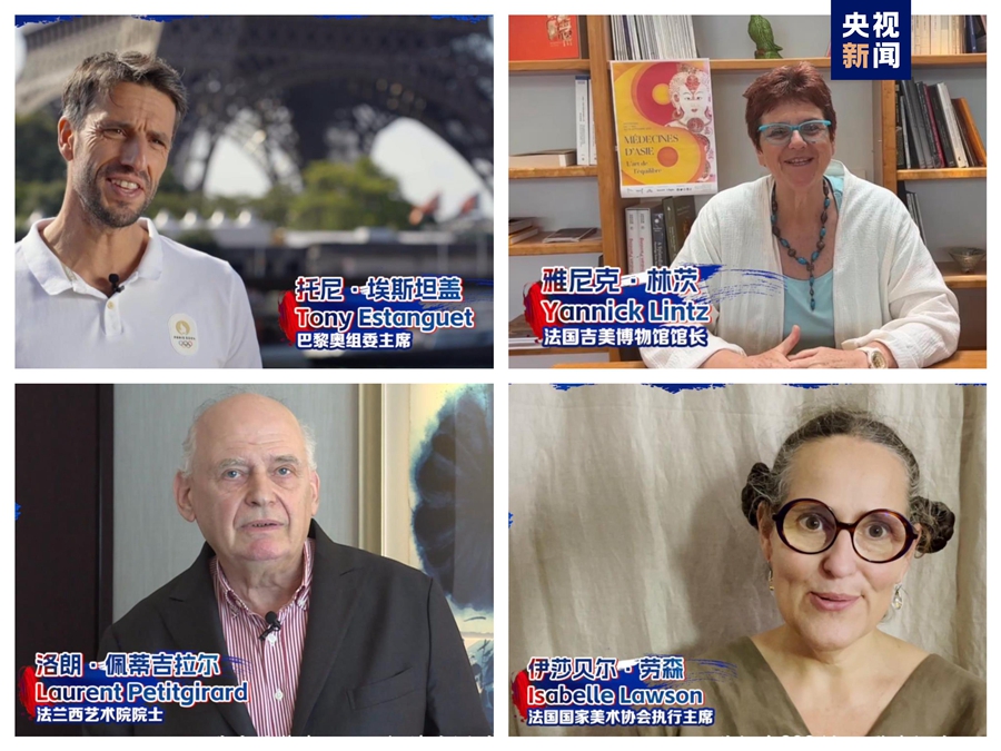 巴黎奧組委主席托尼·埃斯坦蓋視頻訪談中,向中國體育健兒、觀眾和藝術(shù)家們發(fā)出美好祝愿與邀請(qǐng)。法國吉美博物館館長雅尼克·林茨、法蘭西藝術(shù)院院士洛朗·佩蒂吉拉爾、法國國家美術(shù)協(xié)會(huì)執(zhí)行主席伊莎貝爾·勞森等法國藝術(shù)界代表向中國藝術(shù)家發(fā)出誠摯邀請(qǐng)。