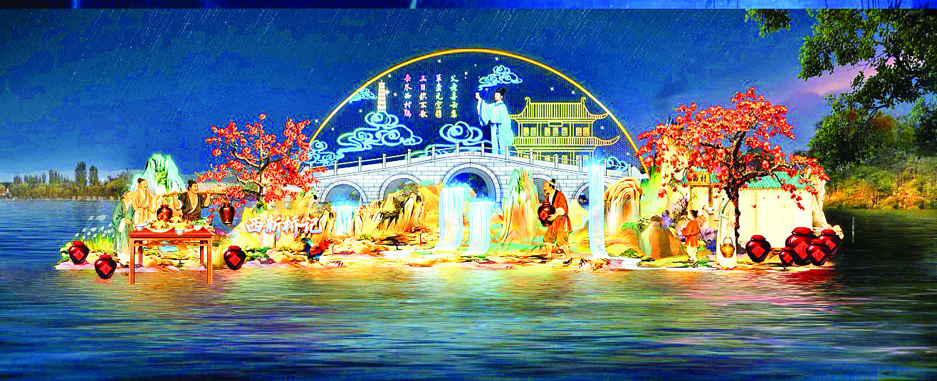 以“嶺南萬戶皆春色”“西新橋記”“佳人相見一千年”等大型主題燈組,再現(xiàn)東坡寓惠的歷史場景,構(gòu)筑國風(fēng)畫面融合東坡詩詞佳句,讓東坡與惠州的情緣綻放時(shí)代華彩。