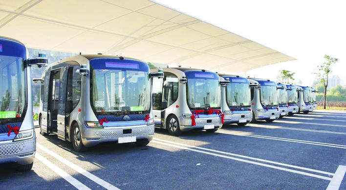 惠州日報訊 (記者楊敬賀 魏怡蘭)近日,記者在仲愷高新區(qū)中韓(惠州)產業(yè)園起步區(qū)的社溪停車場看到,一輛輛“迷你”巴士格外引人注目。別看它們看上去呆萌小巧,內部設計可是科技感滿滿——大舷窗,多面型組合以及車身四周的傳感器等。進入車內,乘客像是來到了一個小型會議室,車內一共只有三排位置,既沒有司機,也沒有方向盤。