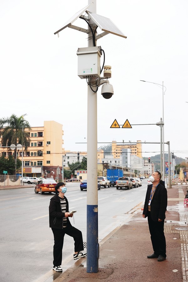 燈桿上的微觀站能24小時(shí)實(shí)時(shí)監(jiān)測(cè)大氣質(zhì)量。 惠州日?qǐng)?bào)記者王建橋 攝