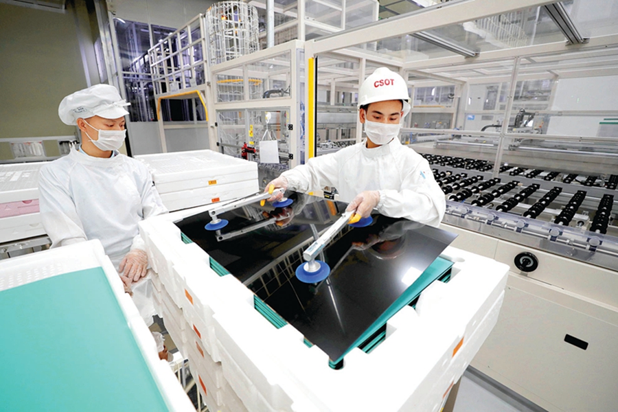工人在華星光電生產(chǎn)車間作業(yè)。 惠州東江圖片社供圖
