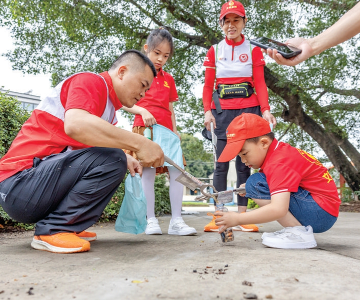 “我周末都會帶孩子一起參加撿跑活動,培養(yǎng)孩子不隨地丟垃圾的好習(xí)慣!爆F(xiàn)場,很多父母帶著孩子一起參加撿跑,用實際行動教育孩子愛護(hù)環(huán)境。