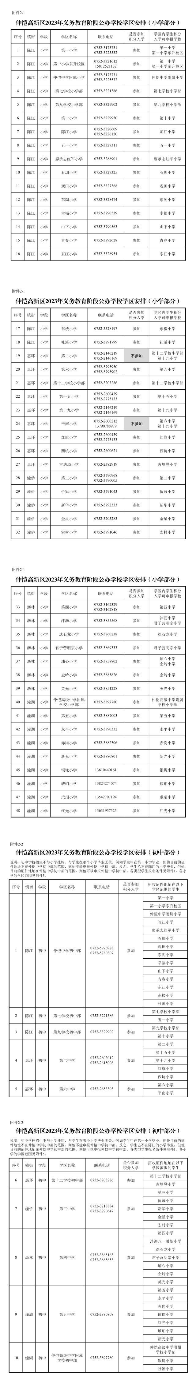附:仲愷高新區(qū)義務(wù)教育階段學(xué)區(qū)劃分及學(xué)區(qū)安排