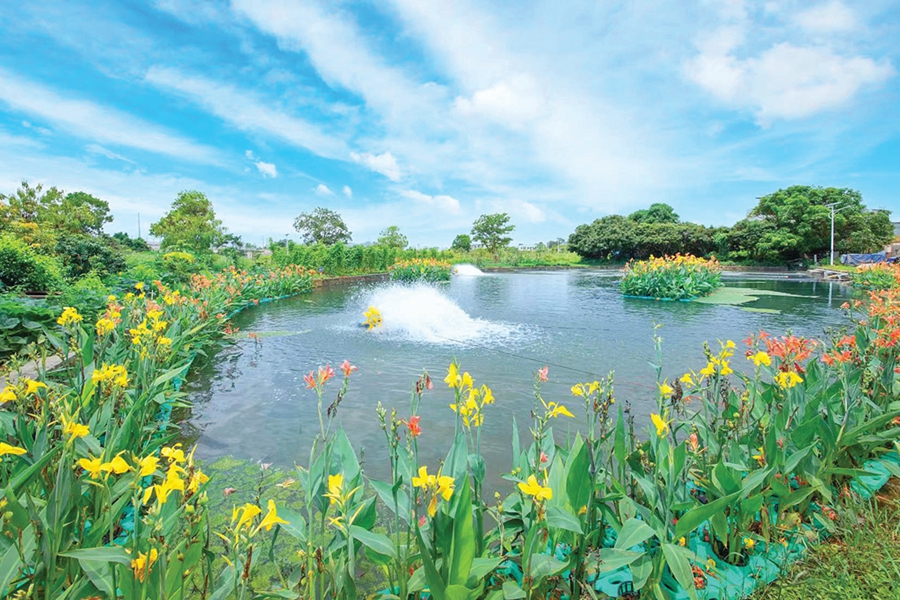陳江洋嶺生態(tài)塘經(jīng)過治理后水清景美。