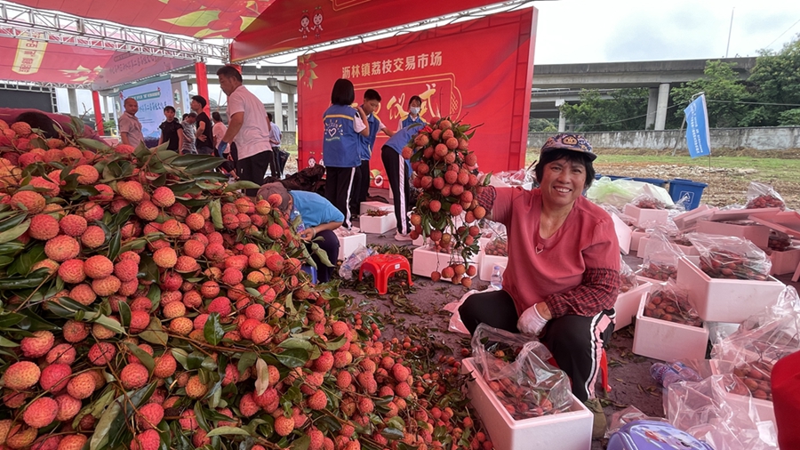 事實(shí)上,早在6月15日,瀝林鎮(zhèn)荔枝交易市場就已開市。當(dāng)天不到2小時(shí),5000多斤荔枝銷售一空。