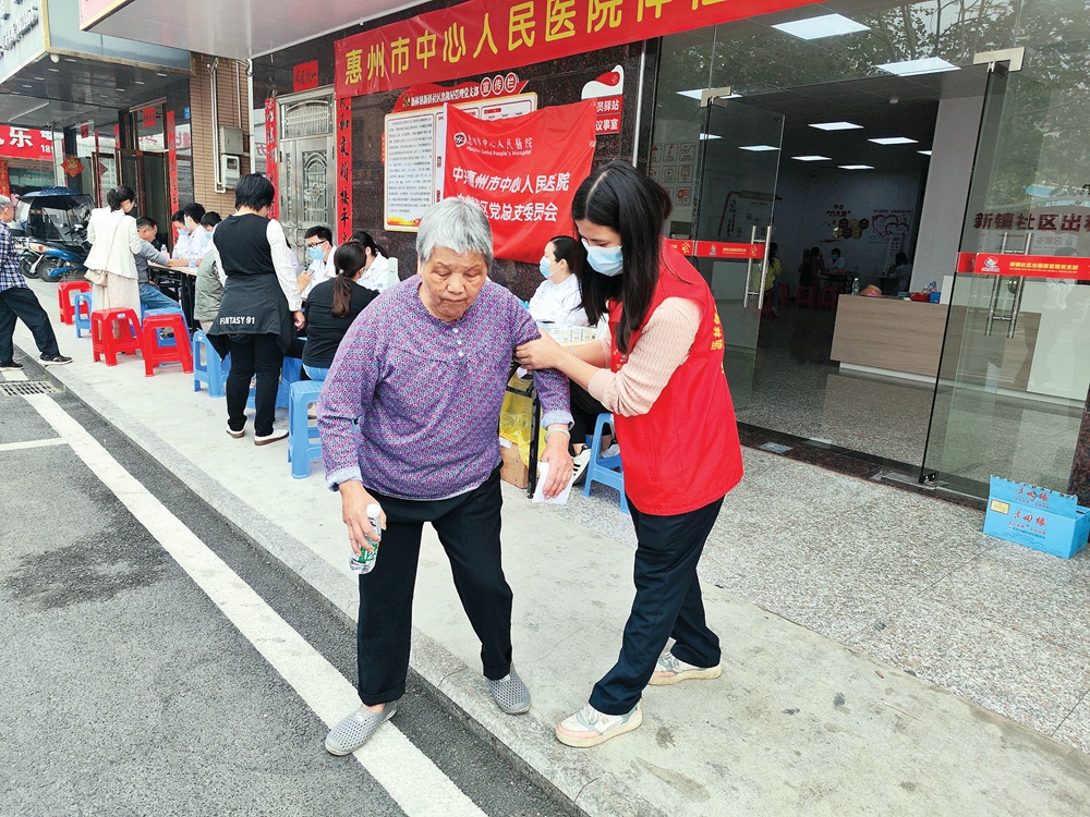 惠州市中心人民醫(yī)院到新鎮(zhèn)社區(qū)“紅色出租屋”黨群服務(wù)站開展義診活動(dòng)。