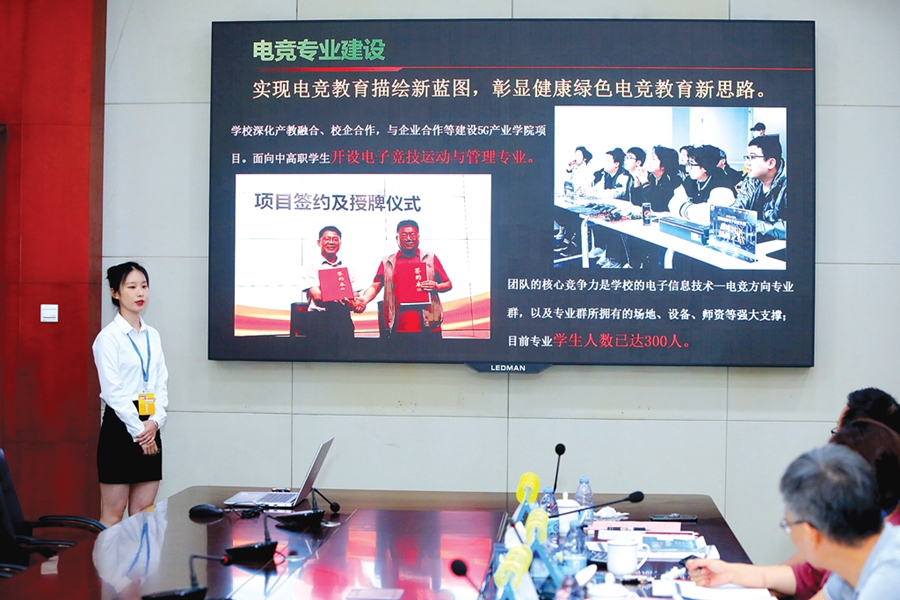 比賽現(xiàn)場,參賽者介紹參賽項目情況。