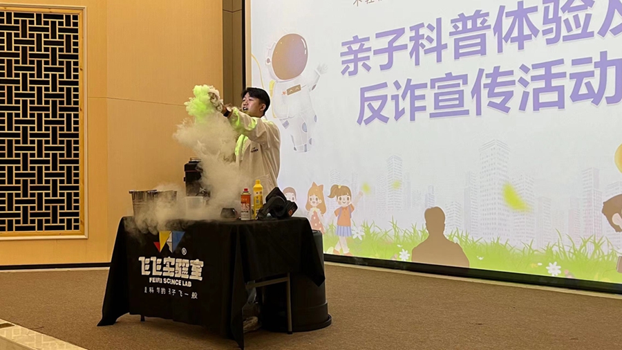啟動(dòng)儀式結(jié)束后,還組織困境家庭代表開(kāi)展了科學(xué)奇幻秀、科學(xué)實(shí)驗(yàn)課等親子科普體驗(yàn)及反詐宣傳活動(dòng),讓家長(zhǎng)、孩子們既學(xué)習(xí)科學(xué)知識(shí),又提高了反詐反家暴防性侵意識(shí),增進(jìn)了親子間的情感交流。