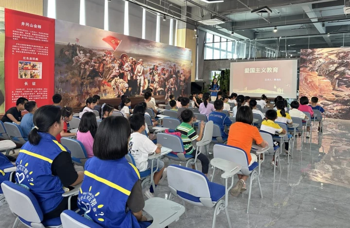 隨后,志愿者組織孩子們進行自我介紹,進行分組、取專屬隊名、選小隊長等環(huán)節(jié),并向大家介紹和展示各自隊伍。緊接著,開始夏令營的第一節(jié)課,由大學生志愿者帶來的“愛國主義教育課堂”。通過向孩子們講述先輩為國奮斗,保家衛(wèi)國的壯烈故事,教育引導小朋友們要有不畏犧牲、勇于奉獻、不懼困難、敬重先烈的精神和品質,增強孩子們的愛國情懷。