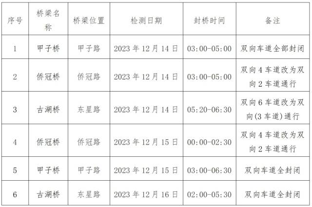 公告提醒,封橋檢測(cè)期間橋梁禁止車輛和行人通過,請(qǐng)市民朋友提前規(guī)劃選擇合適的路線出行,由此造成的出行不便,敬請(qǐng)諒解。