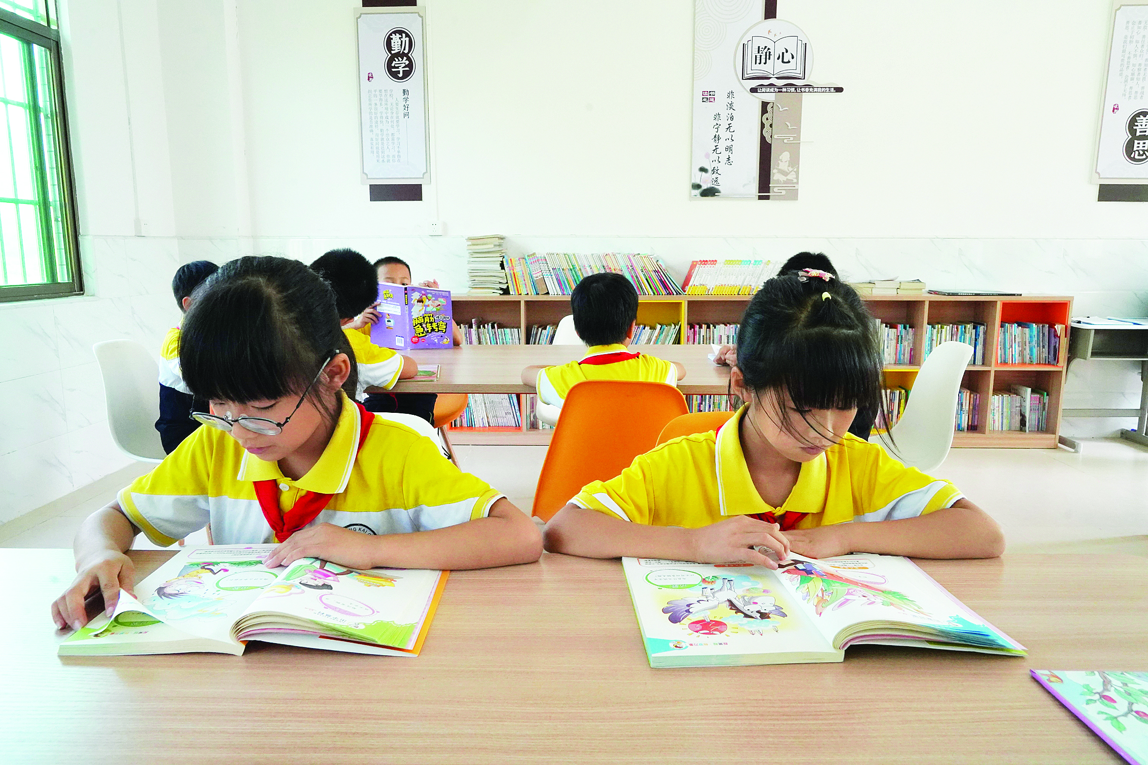 窗外抬頭見綠,四周是碧綠的田野和起伏的青山,陽(yáng)光灑進(jìn)燈塔校園圖書室,孩子們翻閱著自己喜愛的圖書,津津有味地徜徉在書海里。這是記者日前在仲愷高新區(qū)潼湖鎮(zhèn)第五小學(xué)玳瑁村分教點(diǎn)燈塔校園圖書室看到的一幕。