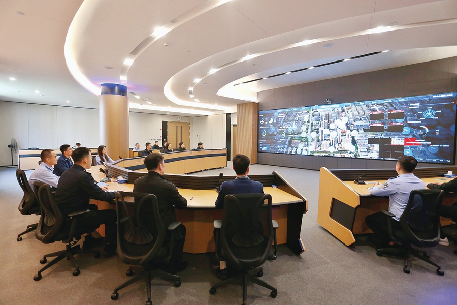 東江應(yīng)急指揮中心內(nèi)的超大顯示屏可輔助園區(qū)進(jìn)行數(shù)字化、精細(xì)化管理。