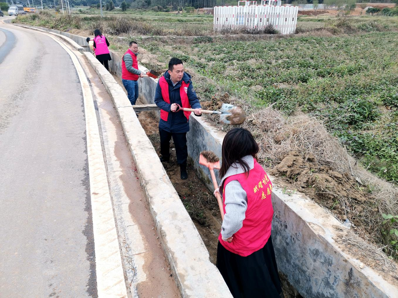 在潼湖鎮(zhèn)玳瑁村活動現(xiàn)場,鎮(zhèn)村干部、志愿者及村民共計30余人,大家手持鐵鏟、鋤頭等工具,對堵塞河道支流灌區(qū)、農(nóng)田灌排溝渠、房屋門前溝渠的淤泥、石塊等雜物進行鏟除和清理。經(jīng)過共同努力,原本存在垃圾漂浮物的農(nóng)村水塘河道、淤泥雜物堆積的溝渠變得潔凈、暢通。據(jù)悉,此次行動共清理溝渠長度約600米,修復(fù)了溝渠排灌功能,有效保障約720畝農(nóng)田的灌溉生產(chǎn)用水,為群眾耕種灌溉提供了有力保障。