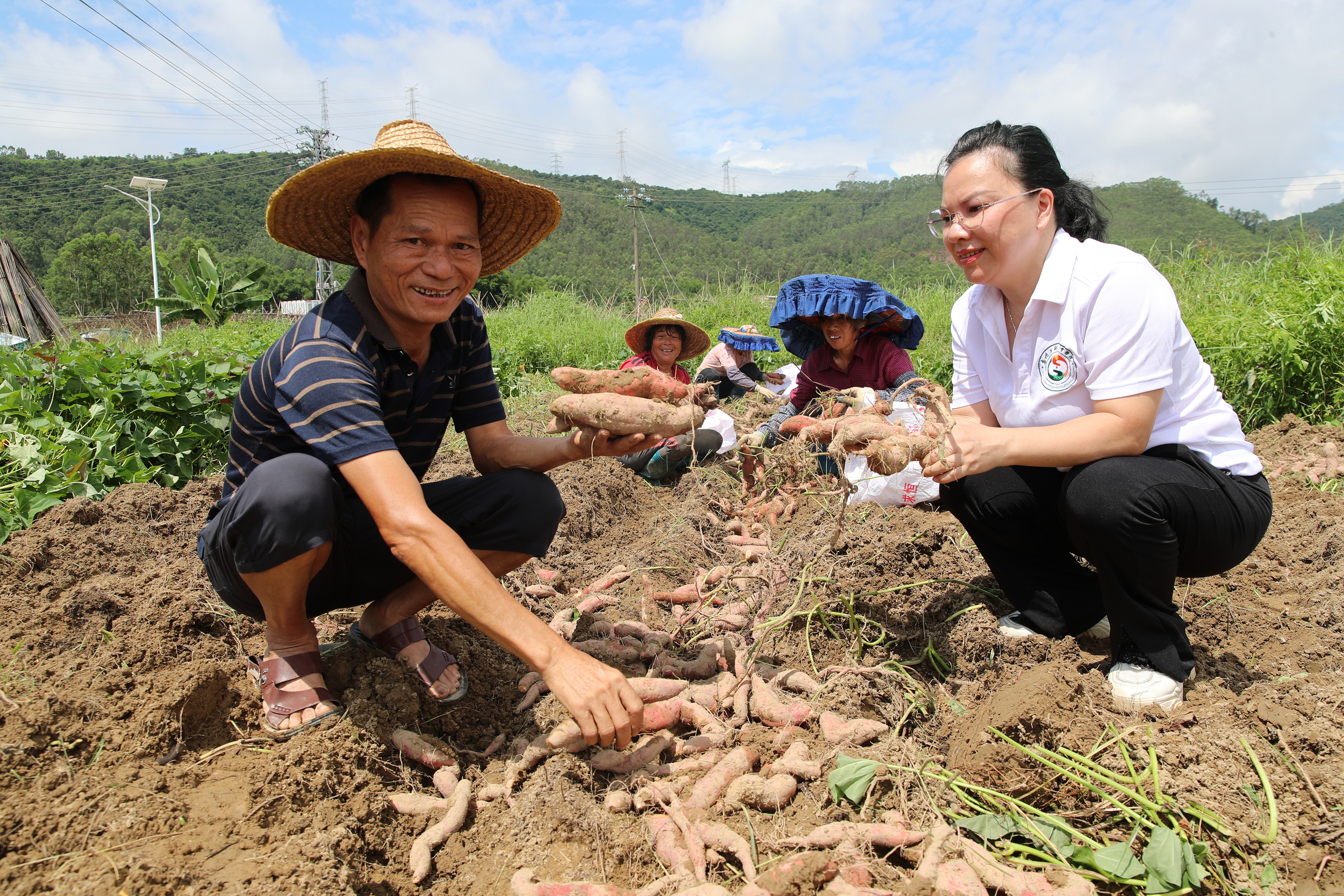 天氣晴好,在仲愷高新區(qū)潼湖鎮(zhèn)玳瑁村的紅薯種植基地,村民們正采收成熟的紅薯,挖扒、去泥、分揀、裝袋……新收獲的紅薯成筐放著,準備裝箱、搬運、銷售。
