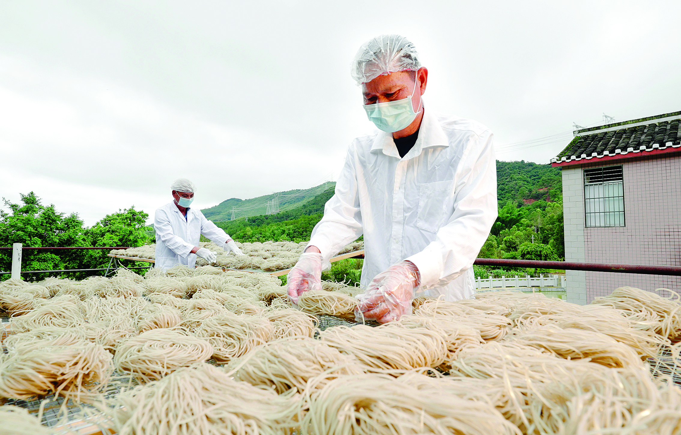 張玖存對工藝的要求非常高。比如做薯粉絲,在拌漿環(huán)節(jié),淀粉與水的比例必須分毫不差,保證蒸出的粉皮軟硬適中。之后大約晾曬四五個小時,用機器切成絲,接著再晾曬兩天,才能進行包裝。由于薯粉絲全程采用傳統(tǒng)制作手法,其口感更為爽滑細膩。