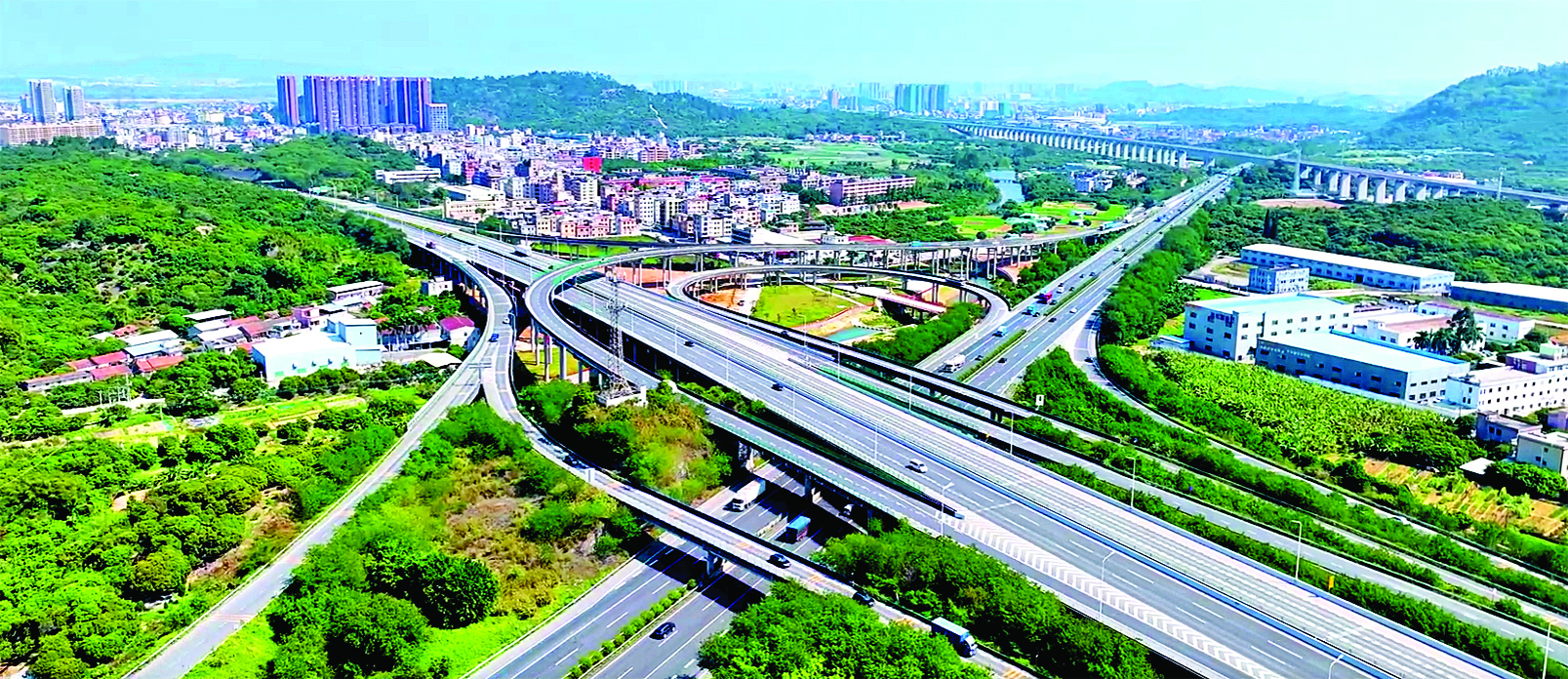 瀝林鎮(zhèn)立體交通路網(wǎng)縱橫交錯(cuò),與和諧宜居的生態(tài)環(huán)境相得益彰;葜萑?qǐng)?bào)記者邱舒婷 通訊員陳靜 攝