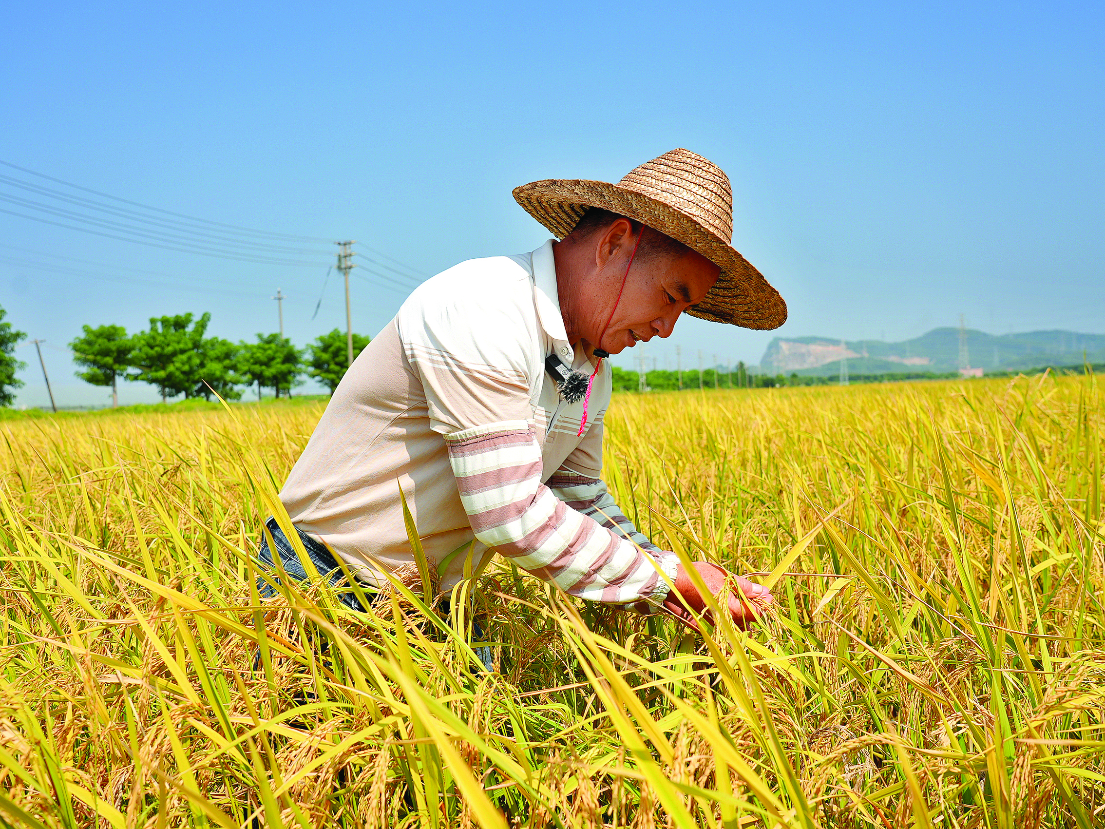 瀝林鎮(zhèn)附近村民楊晚興在合作社帶動下,見縫插針種植中季稻。