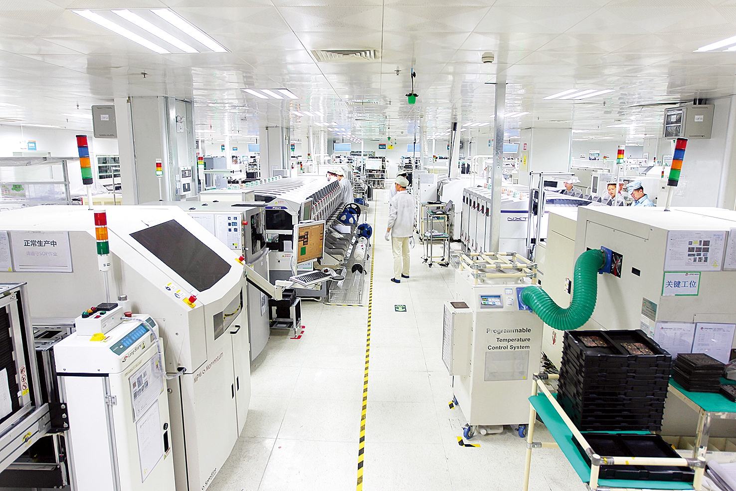 仲愷龍旗電子(惠州)有限公司生產(chǎn)車(chē)間里,技術(shù)人員在監(jiān)控自動(dòng)化設(shè)備。 惠州東江圖片社供圖