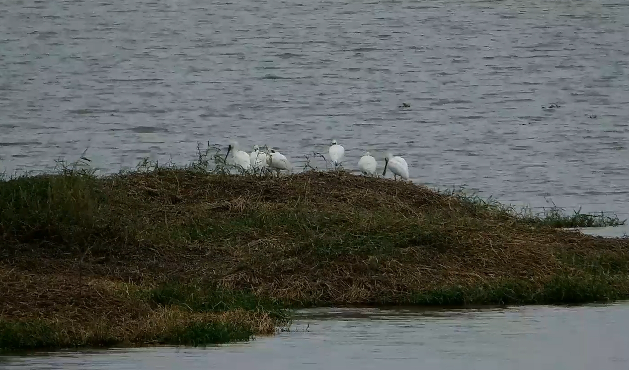 同步記錄的黑臉琵鷺群尤為珍貴,有著“鳥(niǎo)界大熊貓”的美譽(yù)。監(jiān)測(cè)顯示,黑臉琵鷺在沼澤濕地上停歇補(bǔ)給,用匙狀喙來(lái)回掃動(dòng)覓食和梳理羽毛,其標(biāo)志性的黑色匙狀喙與白色羽衣形成鮮明對(duì)比。廣東惠州潼湖國(guó)家濕地公園管護(hù)中心相關(guān)負(fù)責(zé)人表示,“數(shù)據(jù)顯示,黑臉琵鷺全球數(shù)量?jī)H存7000多只,此次潼湖國(guó)家濕地公園記錄到7只停歇,這一罕見(jiàn)集群現(xiàn)象,說(shuō)明歷年來(lái)潼湖濕地的生態(tài)功能保護(hù)成效逐步顯現(xiàn)”。