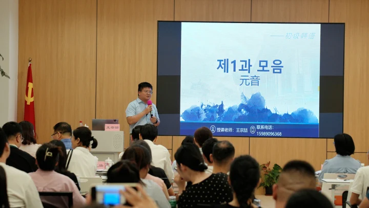 在日常用語(yǔ)學(xué)習(xí)板塊,簡(jiǎn)單的韓語(yǔ)問(wèn)候語(yǔ):您好嗎?早上好,你好(同輩之間的稱呼),以及數(shù)字1-10等韓語(yǔ)表達(dá)成為學(xué)員們反復(fù)練習(xí)的重點(diǎn)內(nèi)容。王老師巧妙地將韓國(guó)文化知識(shí)融入教學(xué)過(guò)程,讓學(xué)員們?cè)谳p松愉悅的氛圍中踏上韓語(yǔ)學(xué)習(xí)之旅。一名學(xué)員感慨道:“作為一個(gè)零基礎(chǔ)的韓語(yǔ)小白,在課堂上學(xué)到了不少發(fā)音技巧和日常用語(yǔ),現(xiàn)在也能用韓語(yǔ)簡(jiǎn)單打招呼了,極大地提升了我學(xué)習(xí)韓語(yǔ)的興趣!