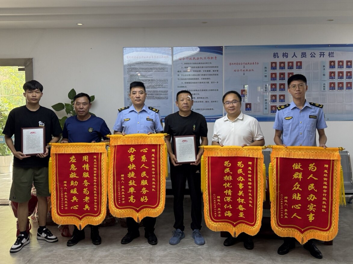 幾天后,康復(fù)的李先生幾經(jīng)輾轉(zhuǎn),帶著錦旗和感謝信找到了執(zhí)法隊(duì),見(jiàn)到了當(dāng)時(shí)救助他的執(zhí)法隊(duì)員。這場(chǎng)風(fēng)雨中的救援與感恩,也成為了惠環(huán)街道動(dòng)人的“雙向奔赴”。
