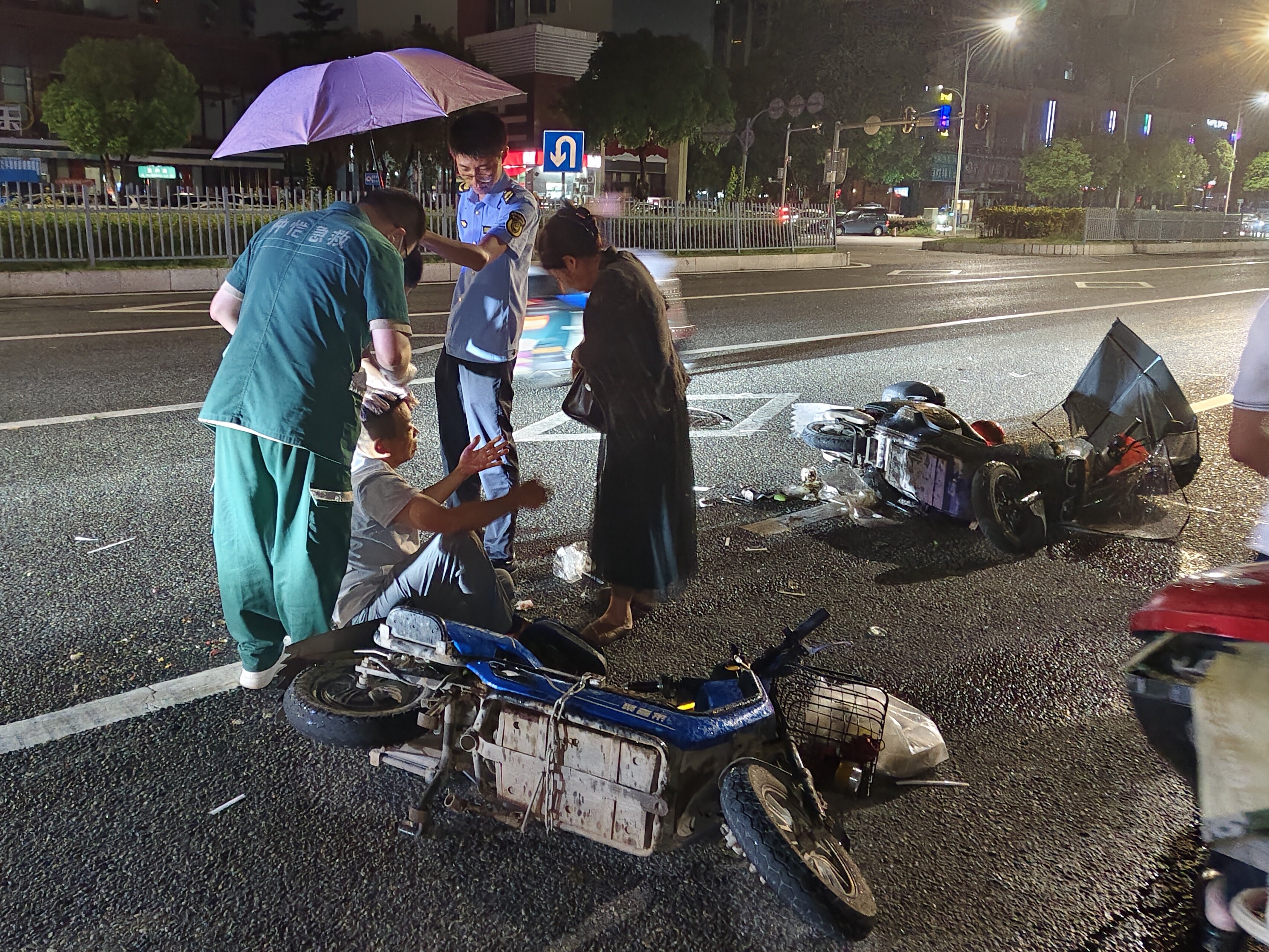 記者了解到,事發(fā)時(shí)是凌晨時(shí)分,臺(tái)風(fēng)“韋帕”帶來(lái)大風(fēng)大雨。當(dāng)時(shí),惠環(huán)街道綜合行政執(zhí)法隊(duì)的隊(duì)員們?cè)谳爡^(qū)內(nèi)冒雨巡查,排查安全隱患。巡邏至和暢五路路段時(shí),隊(duì)員們發(fā)現(xiàn)兩輛電動(dòng)車倒在路面上,還遠(yuǎn)遠(yuǎn)傳來(lái)哭聲。他們立即上前查看,發(fā)現(xiàn)一名年輕女子受了傷正在哭泣。而李先生也被摔得頭破血流,他的妻子被這一場(chǎng)面嚇到,只是無(wú)助痛哭。了解現(xiàn)場(chǎng)情況后,隊(duì)員們迅速撥打了120急救電話。在等待救護(hù)車的過(guò)程中,他們一邊維持現(xiàn)場(chǎng)秩序,疏導(dǎo)過(guò)往車輛,一邊安撫傷者及其家屬。由于擔(dān)心傷者淋雨加重傷勢(shì),他們還紛紛撐傘為李先生遮擋傷口,任憑雨水打濕制服,成為了風(fēng)雨中最可靠的屏障。當(dāng)救護(hù)車抵達(dá),隊(duì)員們又合力將傷者抬上擔(dān)架,詳細(xì)向醫(yī)護(hù)人員說(shuō)明情況,直到救護(hù)車消失在雨幕中,才默默整理好濕透的制服繼續(xù)巡邏。