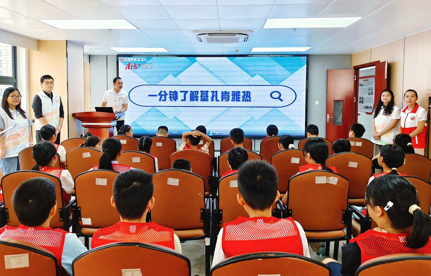 活動(dòng)伊始,產(chǎn)發(fā)中心黨支部特別安排了健康知識科普環(huán)節(jié),開展“健康護(hù)童心”行動(dòng)。考慮到孩子屬于基孔肯雅熱傳染病易感染人群,產(chǎn)發(fā)中心黨支部通過宣傳短片、情景講解與互動(dòng)問答,向孩子們科普基孔肯雅熱的傳播路徑、典型癥狀及預(yù)防方法,通過“小手拉大手”,共筑園區(qū)的健康防線。