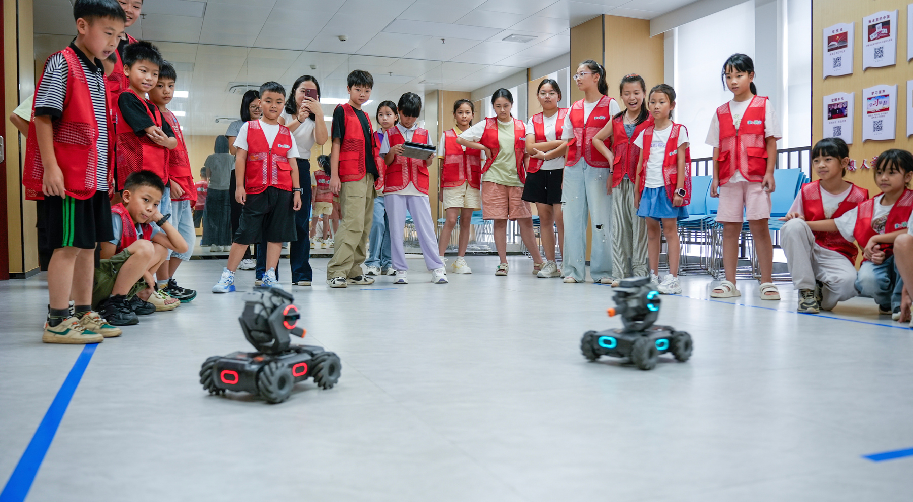 機(jī)器人足球PK賽更是熱鬧非凡,孩子們操控著“小球員”,與隊(duì)友默契配合,在競(jìng)技中體驗(yàn)團(tuán)隊(duì)協(xié)作的樂趣,競(jìng)爭(zhēng)意識(shí)和應(yīng)變能力也得到了鍛煉。而大疆機(jī)甲大師的操控與對(duì)戰(zhàn),讓孩子們?cè)诳犰诺捏w驗(yàn)中,進(jìn)一步探索著機(jī)器人操控的魅力,享受著科技帶來的歡樂。