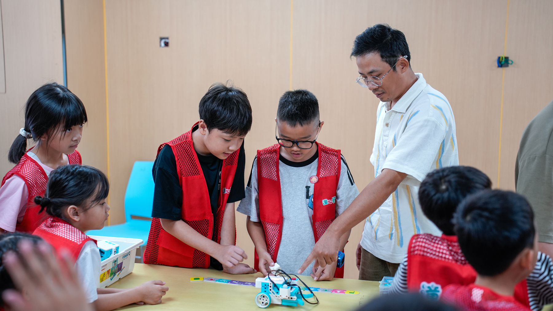 剛到達(dá)活動(dòng)營(yíng)地——中韓(惠州)產(chǎn)業(yè)園起步區(qū)黨群服務(wù)中心,孩子們就走進(jìn)了機(jī)器人的知識(shí)世界。在這里,他們從了解機(jī)器人的驅(qū)動(dòng)、感知、控制系統(tǒng)到認(rèn)識(shí)手臂、電動(dòng)機(jī)、傳感器等零部件,以及在醫(yī)療、工業(yè)、運(yùn)輸?shù)榷鄠(gè)領(lǐng)域的神奇應(yīng)用,心中的好奇被瞬間點(diǎn)燃。通過趣味實(shí)踐,孩子們親眼見證這些“法寶”如何讓機(jī)器人擁有“看”和“聽”的能力,原本抽象的科學(xué)原理瞬間變得生動(dòng)易懂。