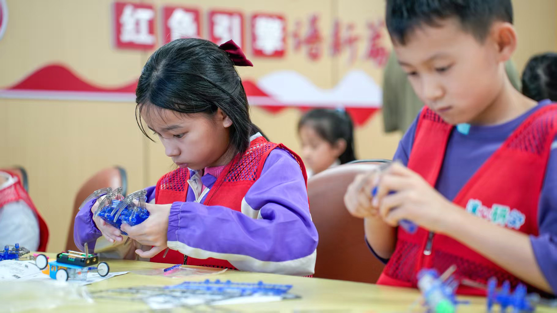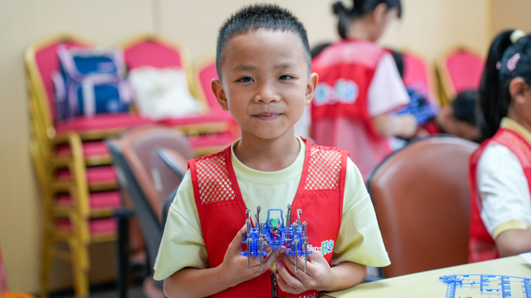 動(dòng)手環(huán)節(jié)成為了孩子們的探索樂園。他們親手拼搭爬蟲機(jī)器人和仿生蜘蛛機(jī)器人,在一次次嘗試與調(diào)整中,感受著征服難題的滿足感,動(dòng)手能力和創(chuàng)新思維悄然提升。
