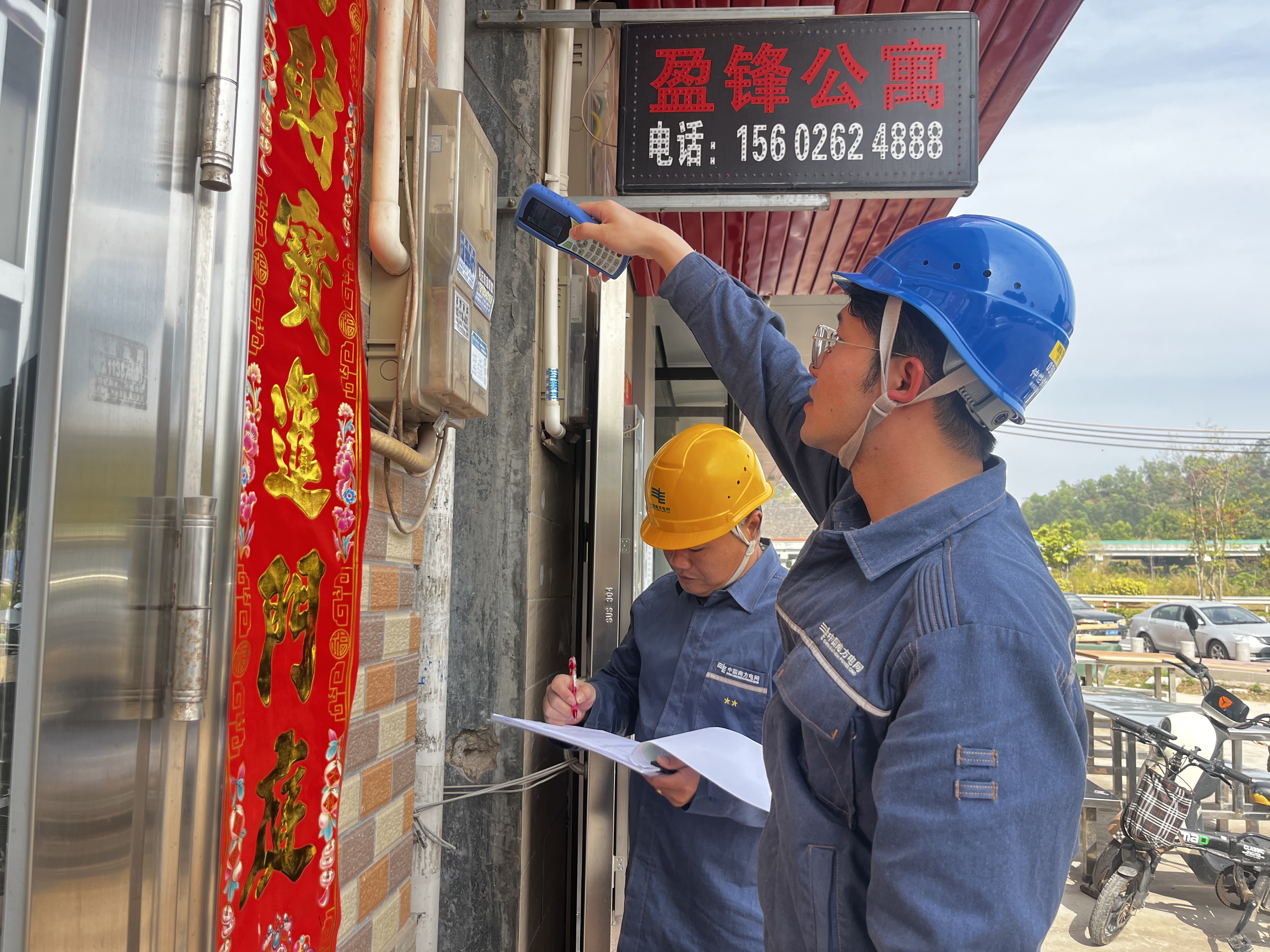 仲愷供電局客戶經(jīng)理現(xiàn)場檢查電表負(fù)荷情況;葜萑請(bào)記者劉乙端 通訊員彭怡青 攝