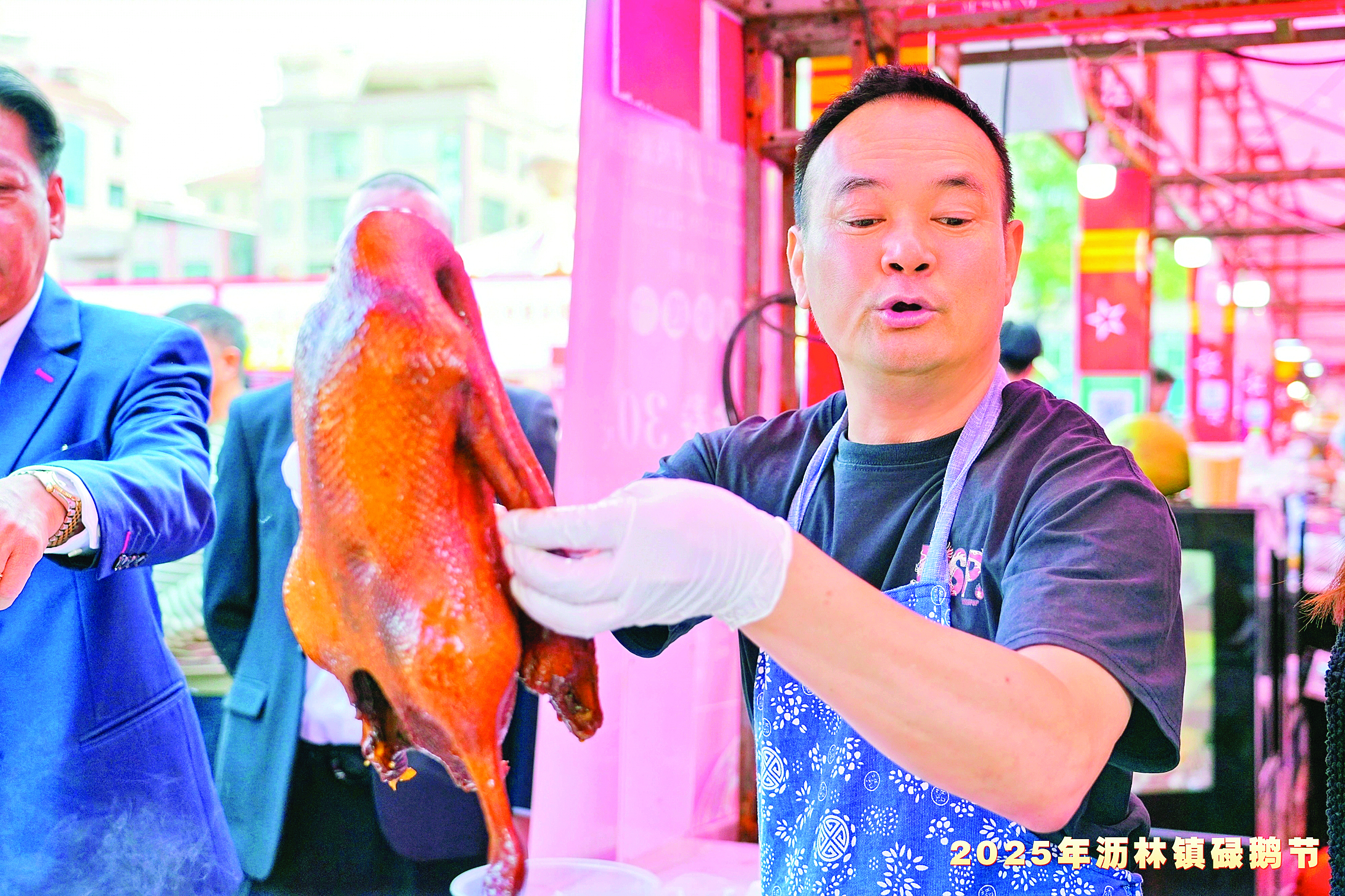 瀝林商會(huì)會(huì)長(zhǎng)張錦強(qiáng)表示,本屆碌鵝節(jié)正是“百千萬(wàn)工程”推進(jìn)過(guò)程中,文化、產(chǎn)業(yè)與煙火經(jīng)濟(jì)深度融合的鮮活縮影!斑^(guò)去一年,在黨委政府的堅(jiān)強(qiáng)領(lǐng)導(dǎo)下,商會(huì)聚焦實(shí)體經(jīng)濟(jì)、服務(wù)鄉(xiāng)村振興,推動(dòng)鵝經(jīng)濟(jì)多點(diǎn)開(kāi)花,逐步打造具有辨識(shí)度的區(qū)域特色品牌!彼f(shuō),此次節(jié)慶不僅是產(chǎn)業(yè)成果的集中展示,更讓瀝林融入大灣區(qū)“城市餐桌”,架起城鄉(xiāng)融合、資源互通的新橋梁。