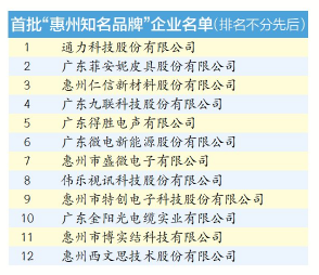 12家企業(yè)獲評惠州知名品牌