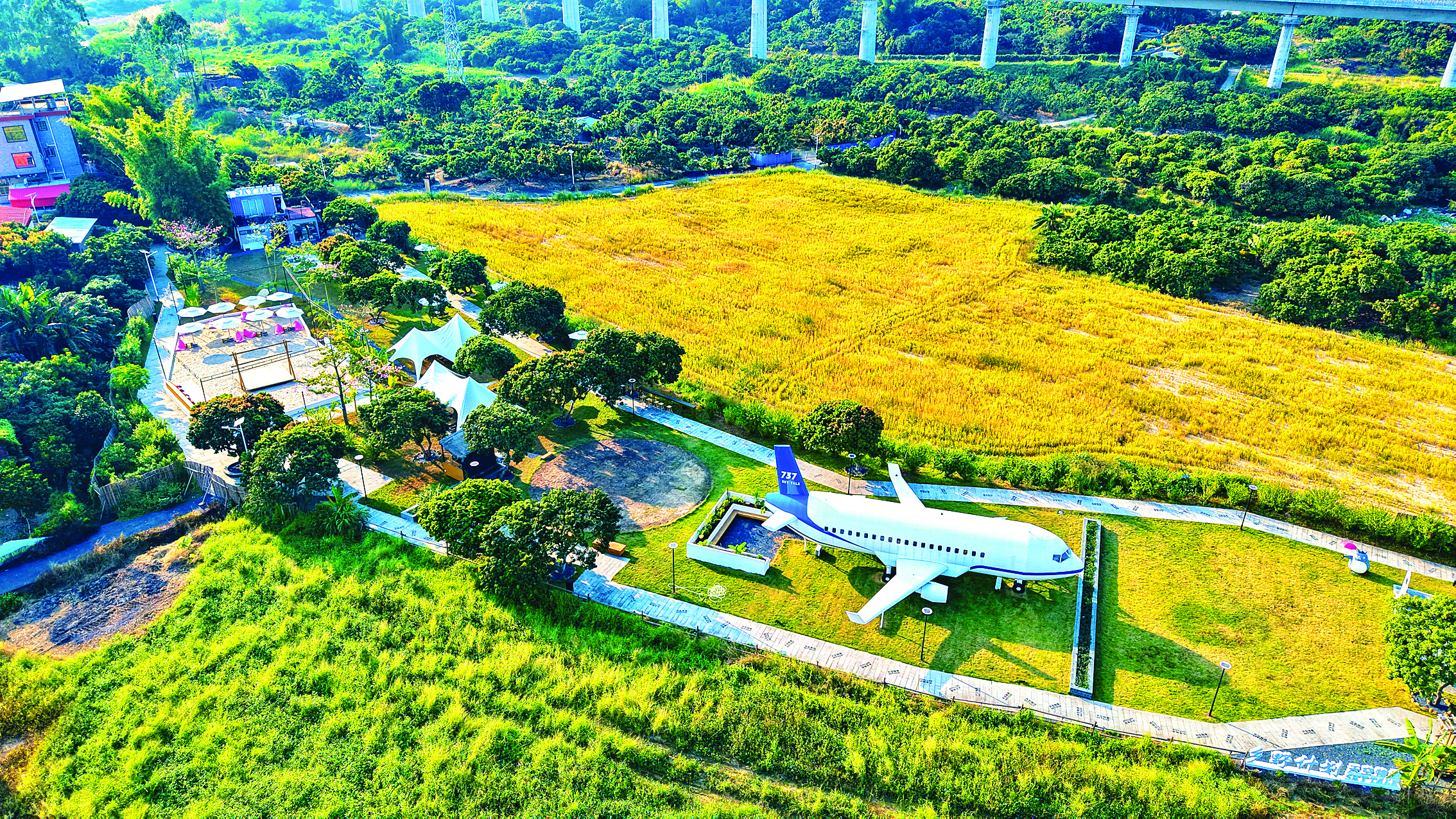 一架“飛”進村里的波音737飛機模型餐廳吸引游客駐足;連片的紅頭蔥田泛起層層綠浪,在微風(fēng)中搖曳生姿;煥然一新的美麗示范主街埔仔路,整潔街景與特色墻繪相映成趣……在瀝林鎮(zhèn),“荔林古韻·鵝鄉(xiāng)新象”美麗鄉(xiāng)村走廊正串珠成鏈,將詩意風(fēng)景、田園趣味與鄉(xiāng)村新生活融為一體。