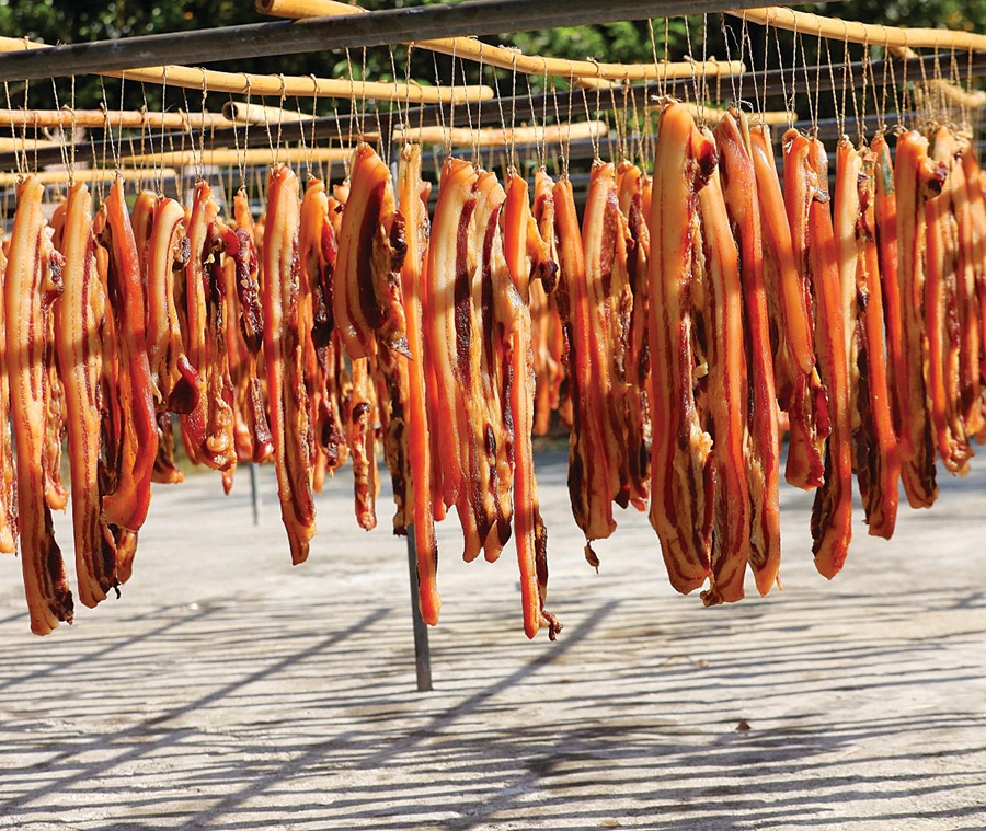西群臘味采用本地自養(yǎng)土豬,制作過程不使用任何添加劑,良好的生態(tài)環(huán)境加上適宜的氣候,西群臘味油光紅亮、口感香甜。優(yōu)美的環(huán)境和飄香的臘味吸引了越來越多的人來西群體驗農家樂,逐漸形成了一條產業(yè)鏈。截至目前,西群村已生產臘味約4萬斤,且一直處于供不應求的狀態(tài),很大程度拓寬了村民的致富門路。