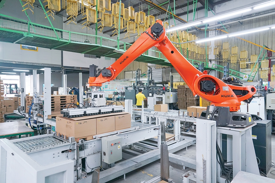 如今,該公司已擁有200多臺自動機械臂,實現(xiàn)了多道工序的自動化作業(yè)!耙赃@條生產(chǎn)線為例,它生產(chǎn)的小推車除了零件分裝外,在取樣、焊接、裁剪、組裝、沖壓等環(huán)節(jié)都已經(jīng)實現(xiàn)了機械臂無人化生產(chǎn)!绷_崇光說,該公司一直在推進自動化改造,“到2025年,我們將在生產(chǎn)線部署超500臺機械臂!