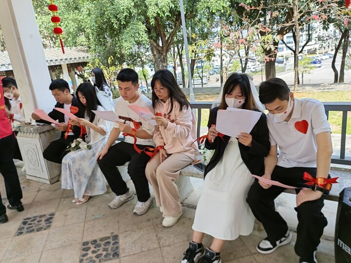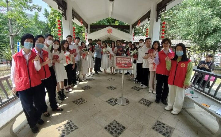 挑戰(zhàn)游戲后,博羅縣婚姻家庭建設(shè)協(xié)會會長葉麗華帶領(lǐng)新人們宣讀《博羅移風易俗婚姻倡議書》,倡儀新人們提倡節(jié)約婚禮,反對鋪張浪費;堅持文明婚慶,破除惡俗婚鬧;推進移風易俗,倡導婚事新辦;顒拥奈猜曔M行了結(jié)婚宣誓、承諾墻的簽名及頒證儀式。通過活動積極推進移風易俗,倡導婚事新辦,用實際行動踐行婚戀新風尚。