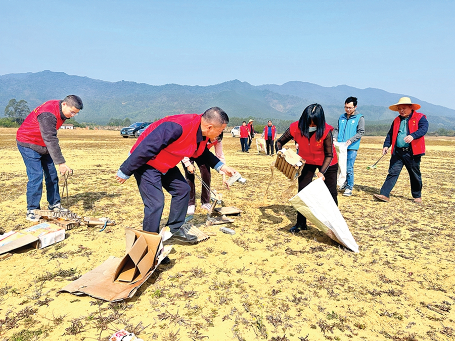 志愿者清理溪聯(lián)村垃圾。 惠州日?qǐng)?bào)記者李燕文 通訊員曾艷萍 攝