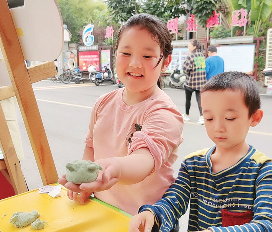 小朋友體驗(yàn)制作艾粄;葜萑?qǐng)?bào)記者盧泓宇 侯婉怡 攝