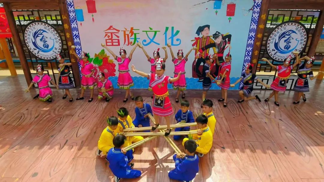 嶂背畬族村創(chuàng)作了畬族歌曲《敬酒歌》《感謝共產(chǎn)黨》《畬寨傳喜訊》,編排了畬族舞蹈《竹竿舞》《畬族阿妹喜唱歌》《山窩窩飄來畬娃的歌》。嶂背畬族小學(xué)將畬歌畬舞納入第二課堂,組織了學(xué)生合唱隊(duì)、舞蹈隊(duì),這不僅極大豐富了學(xué)生的第二課堂活動(dòng),而且有利于更好地開展畬族傳統(tǒng)文化的挖掘、傳承和保護(hù)。