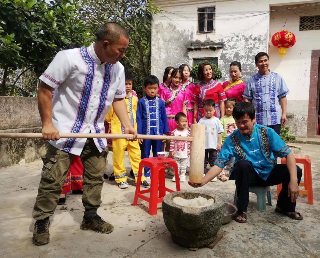 畬族群眾正在打糍粑。