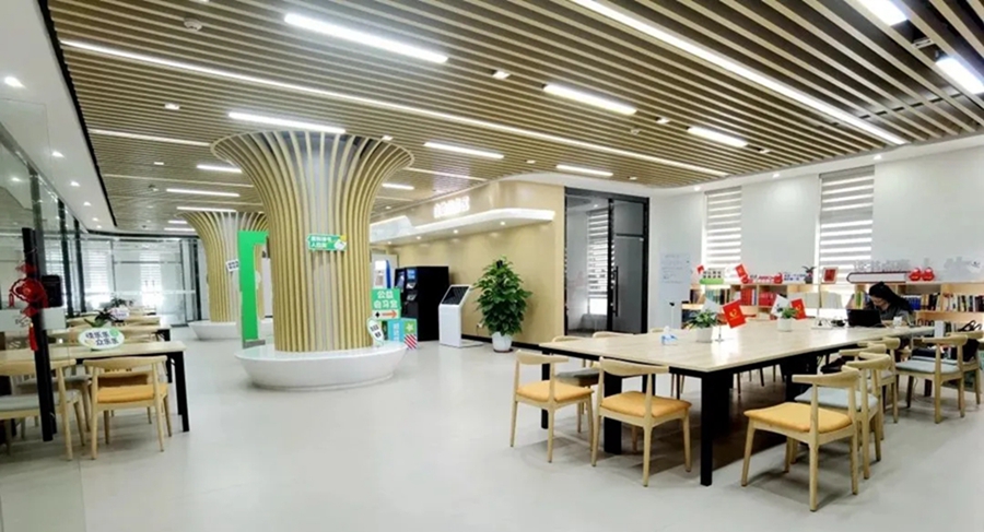 公益自習(xí)室寬敞明亮,米色系的桌椅干凈整潔,一旁還有可供市民自由閱讀的書(shū)籍,將人瞬間帶入書(shū)的海洋。秉承以人為本的服務(wù)理念,室內(nèi)還配備有免費(fèi)開(kāi)放的冷氣、便民充電口、無(wú)限供應(yīng)的茶水、公共Wi-Fi、儲(chǔ)物柜、飲水機(jī)、電熱水壺、微波爐等人性化配套設(shè)施,全力為廣大青年提供舒適的學(xué)習(xí)環(huán)境。